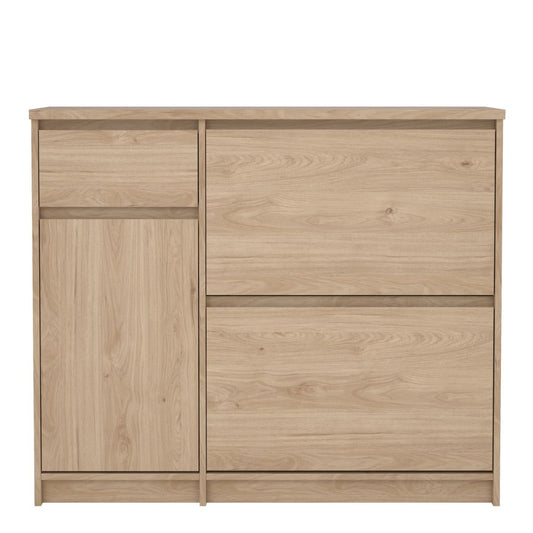 Naia Shoe Cabinet with 2 Flip Down Doors 1 Door and 1 Drawer in Jackson Hickory Oak