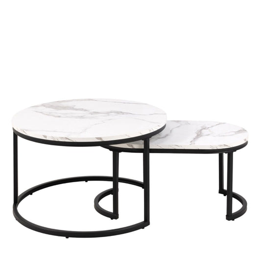Spiro Coffee Table Set with White Marble Melamine Top & Black Legs