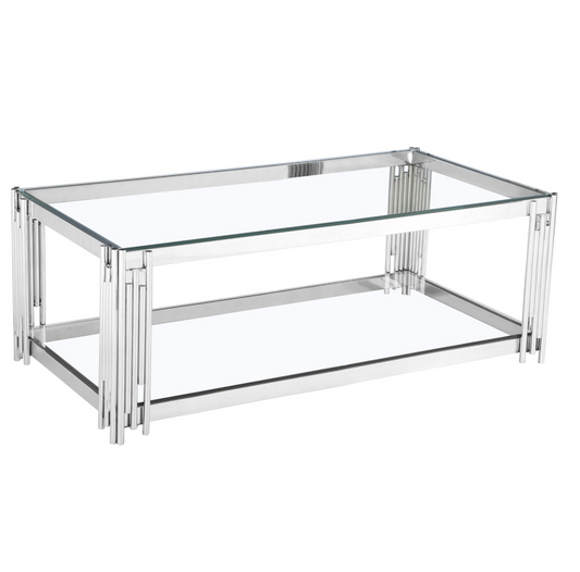 Cleveland Clear Glass Coffee Table – Silver | 1000W x 500D x 450H