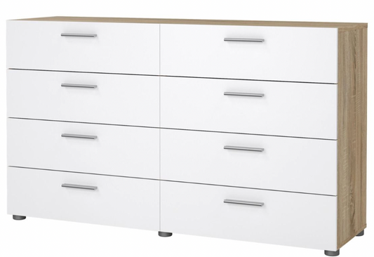 Pepe 8 Drawer Oak Double Dresser – White High Gloss Bedroom Storage