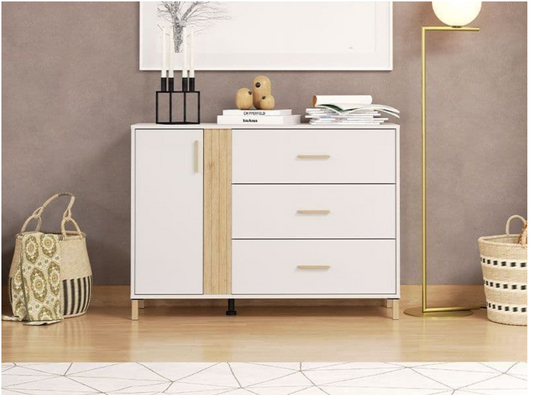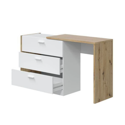 Gothenburg White and Oak Space Saving Chest of Drawer Desk