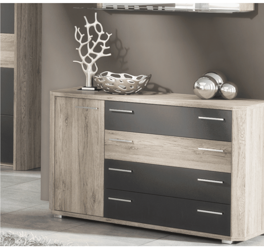 Asmara Oak Effect And Black 4 Drawer Sideboard