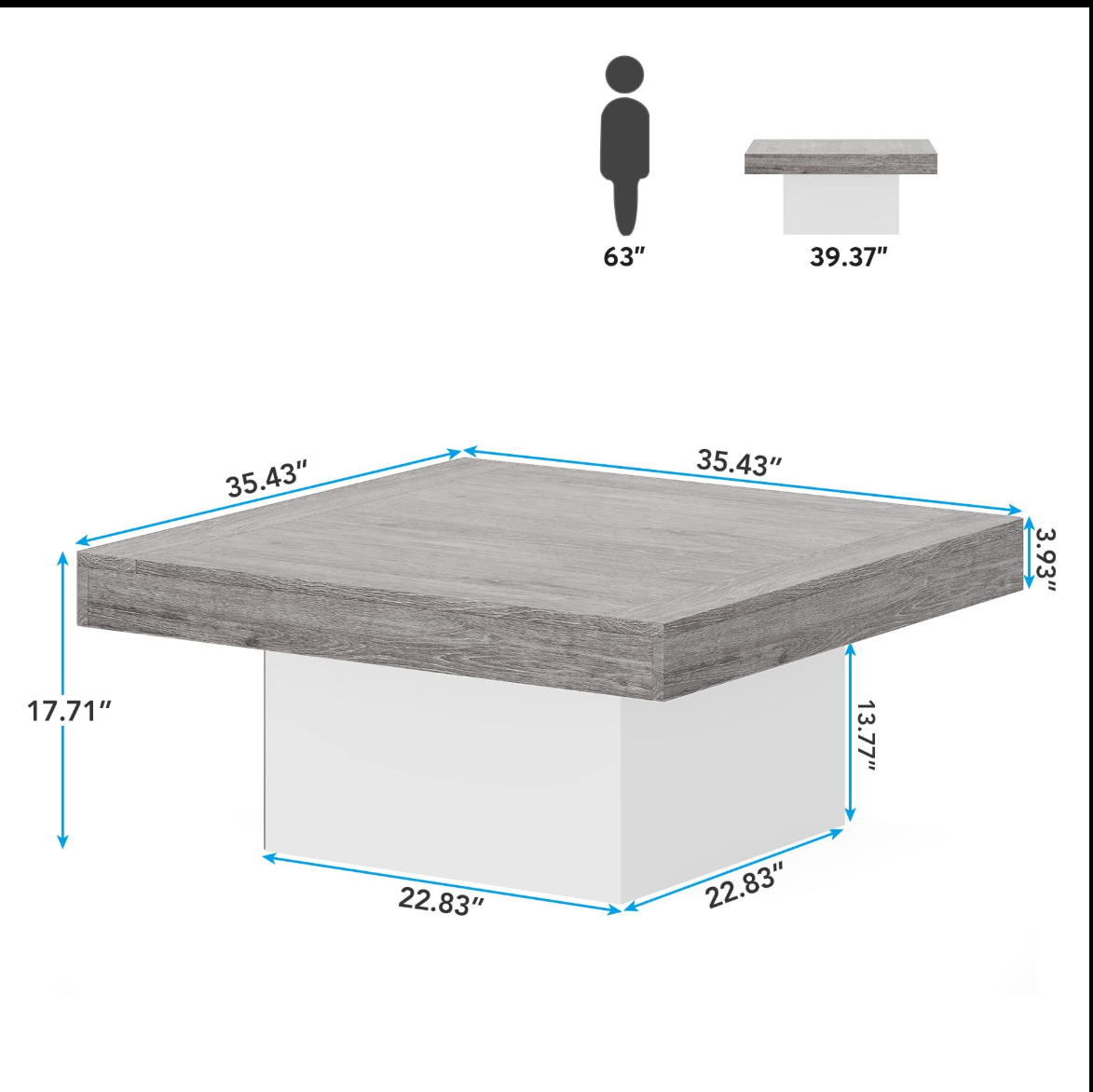 90×90×45 cm | Square LED Coffee Table – Grey & White Wood Center Table with Lights