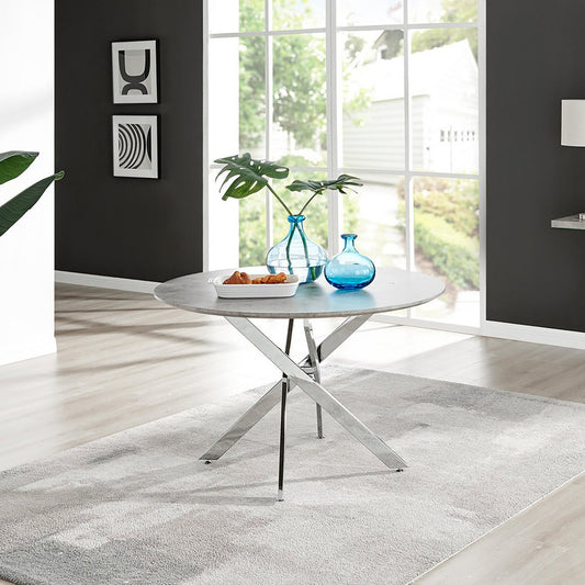 Novara Round Concrete Effect and Black Metal 4-6 Seater Dining Table