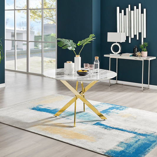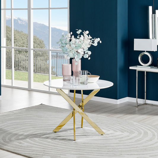 Novara Round White Marble Effect and Gold Metal 4 Seater Dining Table