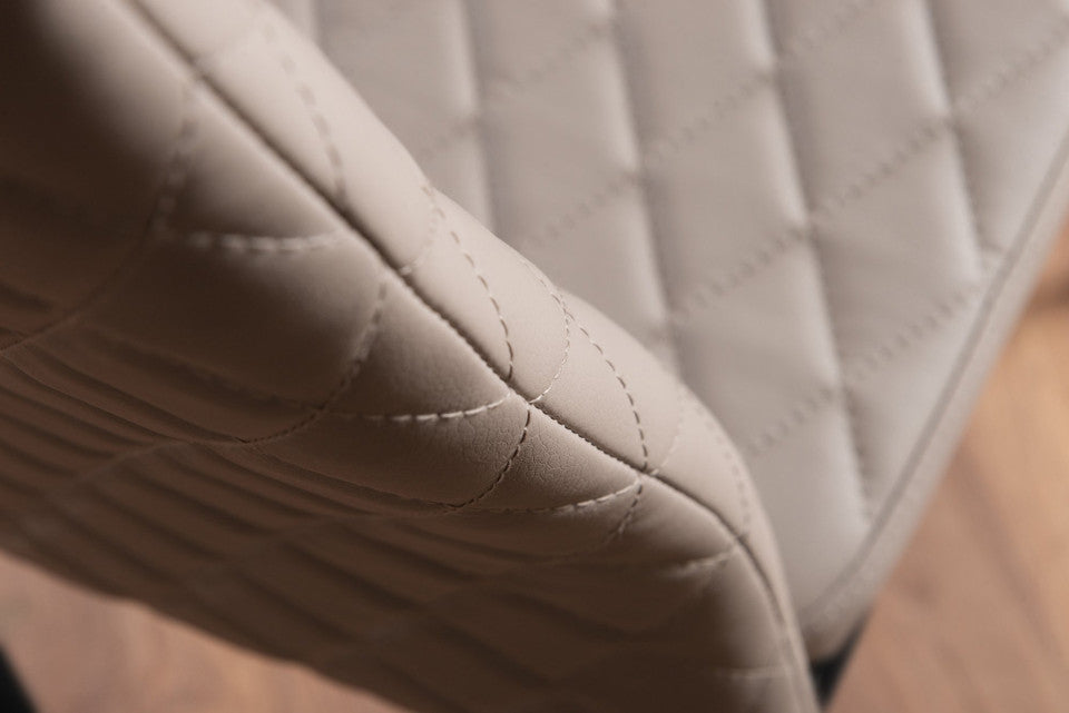Milan dining chairs with diamond-quilted faux leather upholstery