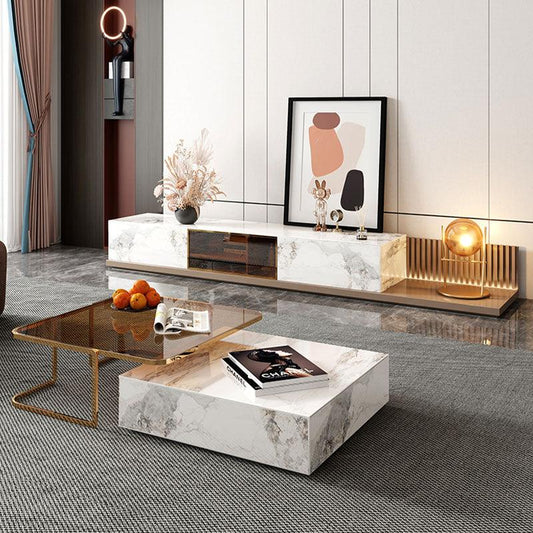AnMoo Nesting Coffee Table Set With TV Stand, Golden Base