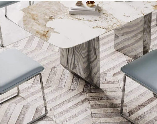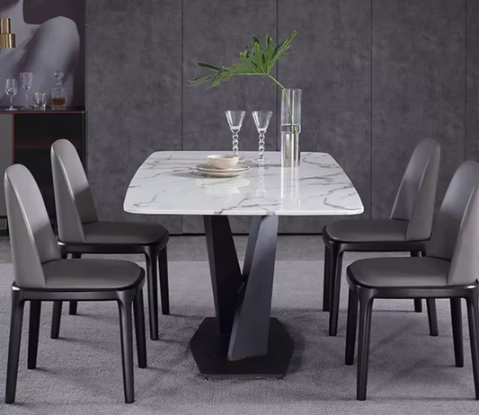 Modern Luxury Marble Dining Table – Rectangular Design with High-Quality Steel Base – Seats 6 to 8 People