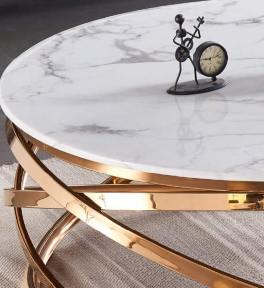 Nabraska Round Marble Coffee Table with Gold Metal Frame – Modern Living Room Furniture