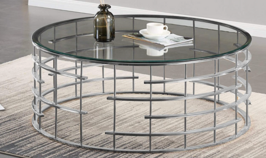 Modern Missouri Round Coffee Table – Clear Glass & Silver Frame