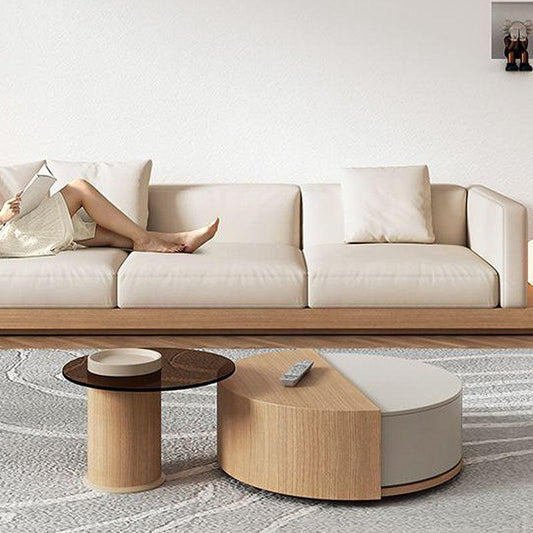 Ndre Nesting Revolving Coffee Table With Extendable TV Stand, Living Room Set