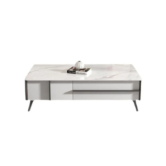 Nordic Luxury Marble Coffee Table – Modern White Stone Top with Gold Metal Frame for Living Room or Kitchen