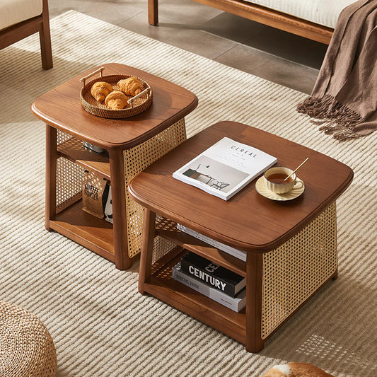 Nordic Walnut Wooden Coffee Table – Minimalist Design with Natural Drawer, White Finish, Living Room Furniture"