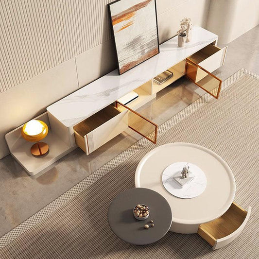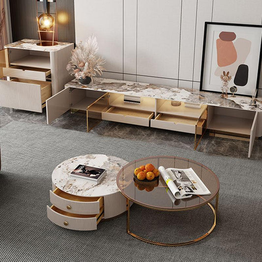 Eudora Modern Nesting Coffee Table Set With TV Stand, Cream And Grey