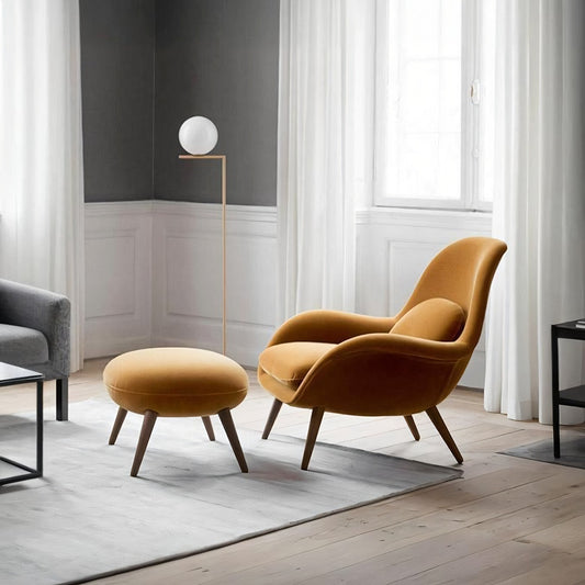 Fredericia Swoon Armchair And Footstool, Velvet, Brown