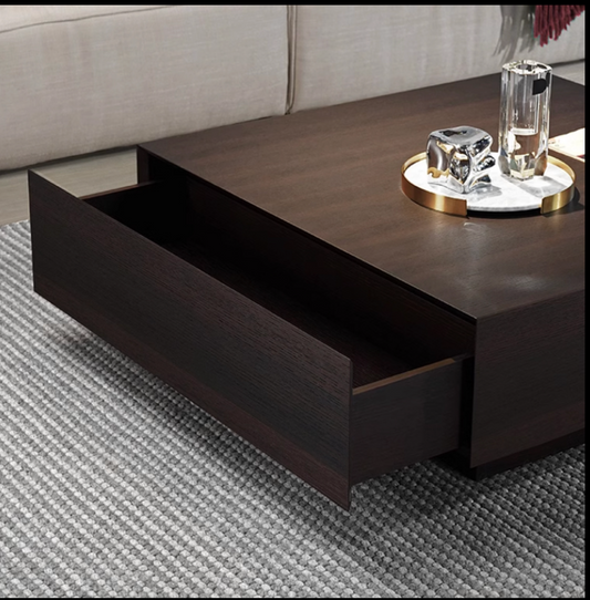 Designer Smoked Wood Coffee Table – Square Minimalist Storage Table 100×100×35 cm