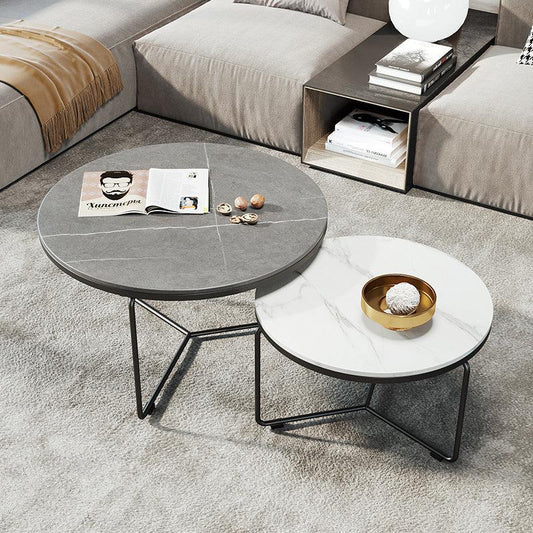 Iver Stone Round Nesting Coffee Table Set, Black & White