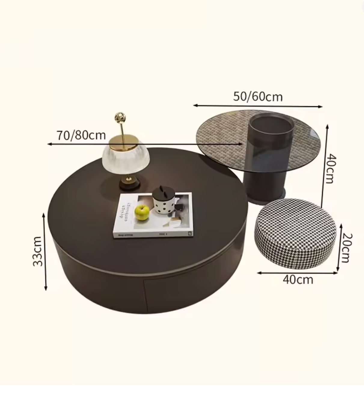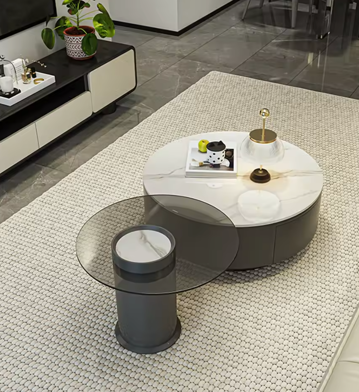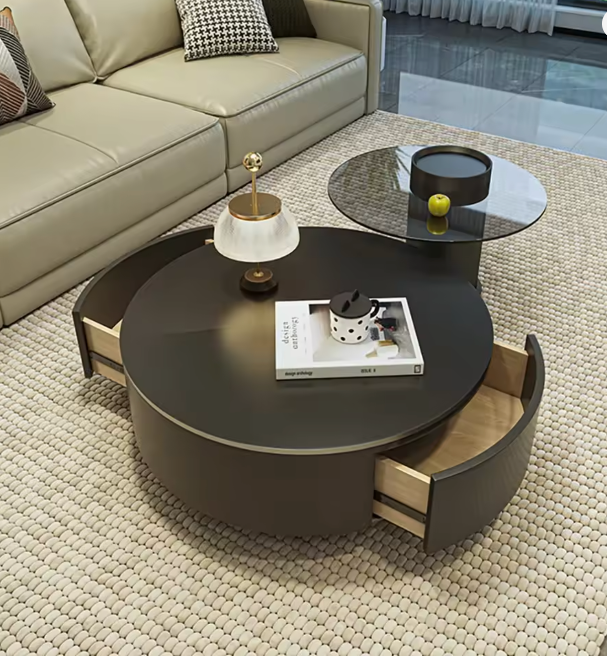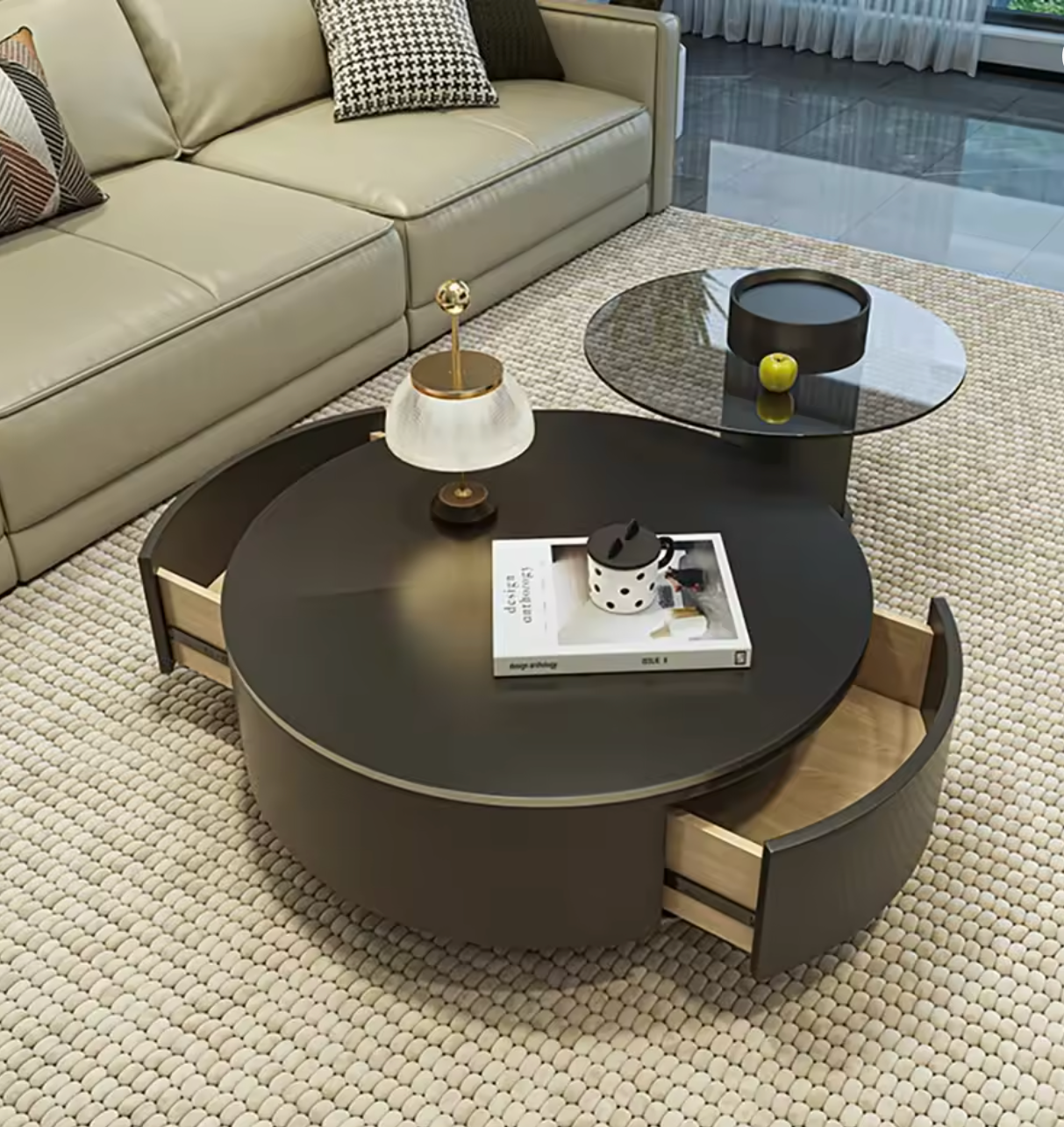 Nordic Round Coffee Table – Minimalist Living Room Decor with 2 Drawers