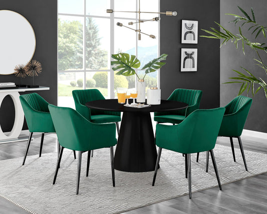 Palma White Marble Effect Round Dining Table & 6 Halle Black Leg Chairs