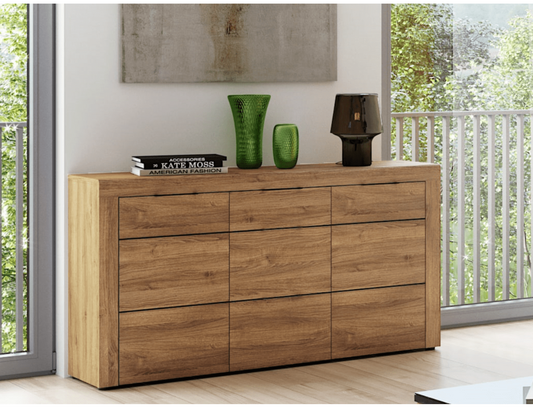 Camar Large Oak Effect 3 Drawer Sideboard