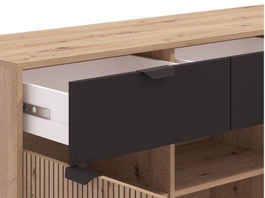 Asmara Oak Effect And Black 4 Drawer Sideboard