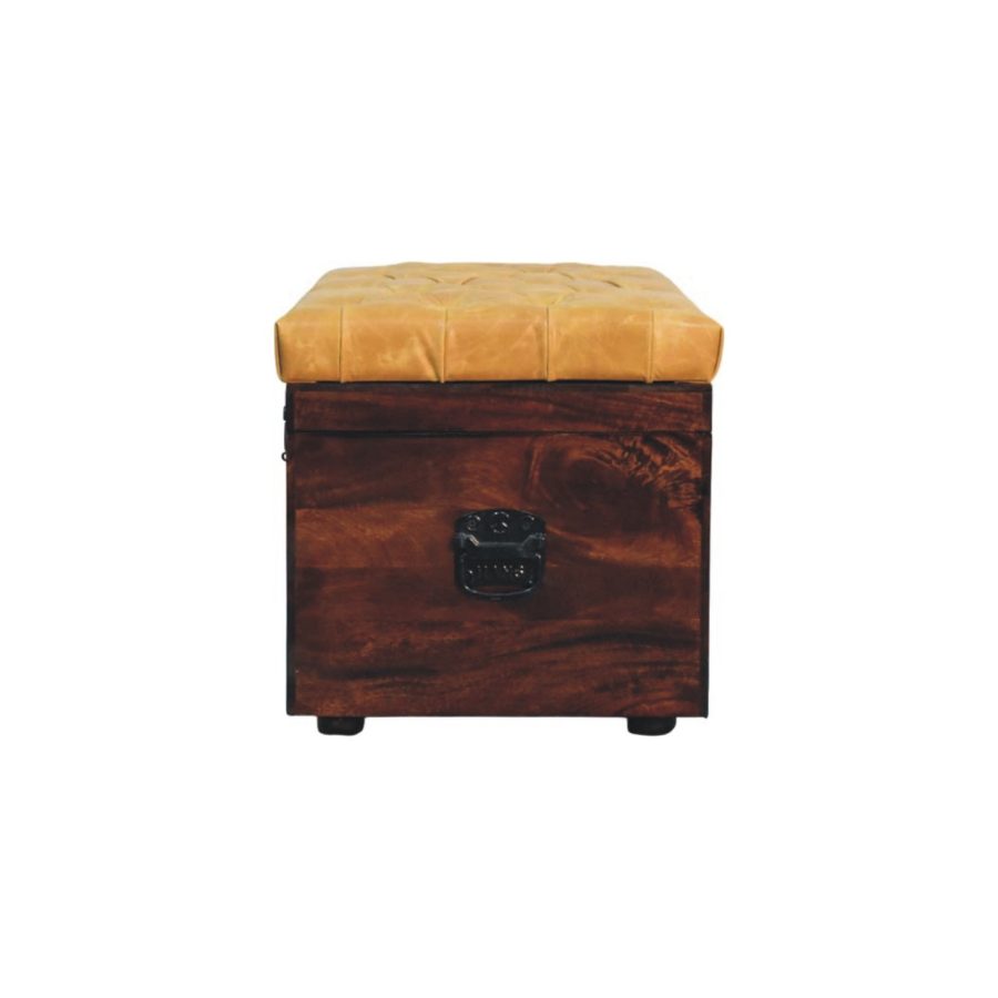 Enhance your home with the Tan Leather Storage Trunk Bench, a perfect fusion of comfort, functionality, and timeless design. Handcrafted from 100% solid mango wood and finished in a warm natural tone, this piece beautifully highlights the rich movement and grain of the wood.